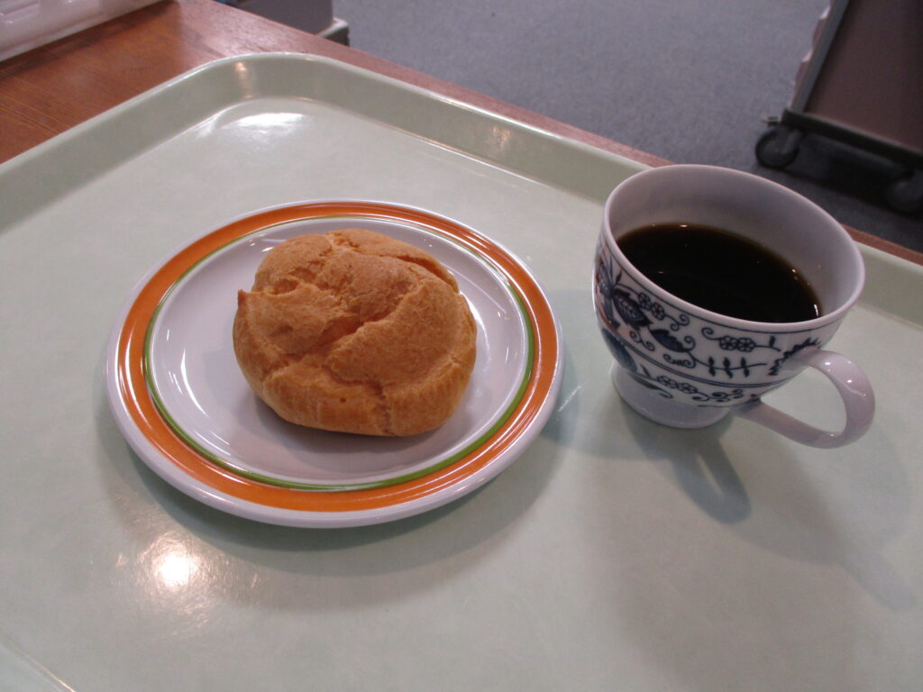 老健喫茶クラブのご紹介です。今回はご利用者様のおリクエストにお応えして【シュークリーム】とホットコーヒーでした。みなさん幸せそうな笑顔で午後のひと時を過ごされていました。